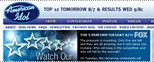 | AI.com I have been working for Fox Interactive Media as the Art Director for americanidol.com since November '05. Season 5 was fantastic and the website recorder it's highest viewership ever. Admit it, you love this show. If you don't, then you are stupid, period. Update! I have recently been promoted to Senior Art Director! |